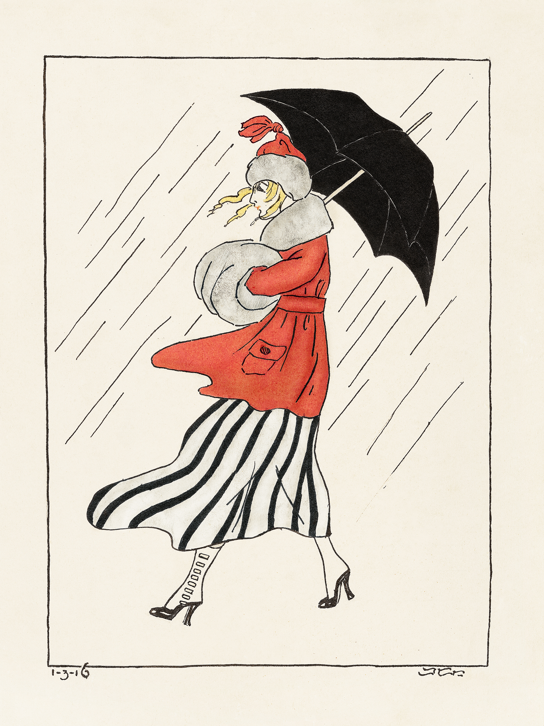 Kvinde med muffe og paraply